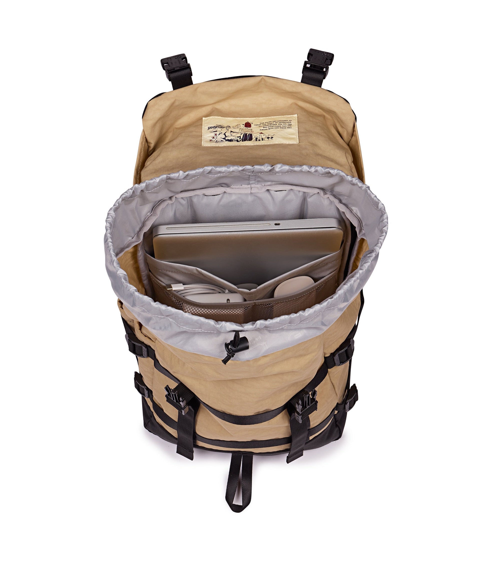Skip Pack is classic JanSport style re-imagined for the modern day. It has a roomy main compartment, easy access from the back panel, and a laptop sleeve. With a side H2O pouch and a top accessory pocket, you're all a-go for new adventures.